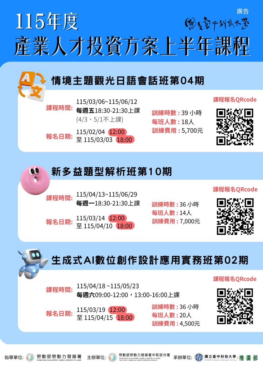 【115年度產業人才投資方案上半年】語文學習課程